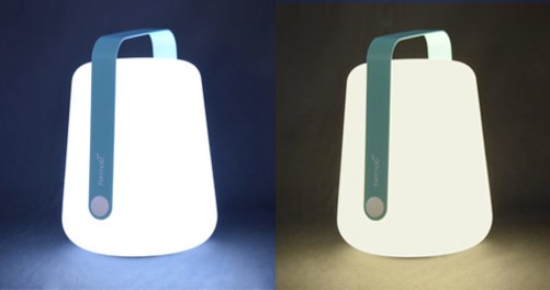 Grâce à son prix accessible, on peut la conjuguer au pluriel ! Sa poignée, inspirée d'un casque audio, marque le côté nomade et branché de la lampe. Elle est aussi un clin d'œil appuyé au savoir-faire métal de Fermob. Balad, la lampe d’extérieur rechargeable par un simple cordon USB, offre une autonomie de 12h environ, 3 températures de lumière : 1 blanc chaud type bougie (2300°K), 1 blanc neutre (4000°K) et 1 blanc froid (6000°K), et 2 intensités d’éclairage (100% et 50%). Elle est disponible dans différents coloris du nuancier Fermob et se combine avec 3 pieds en métal.