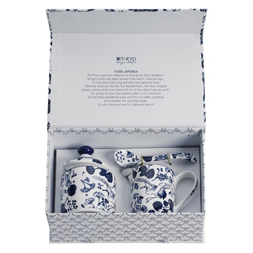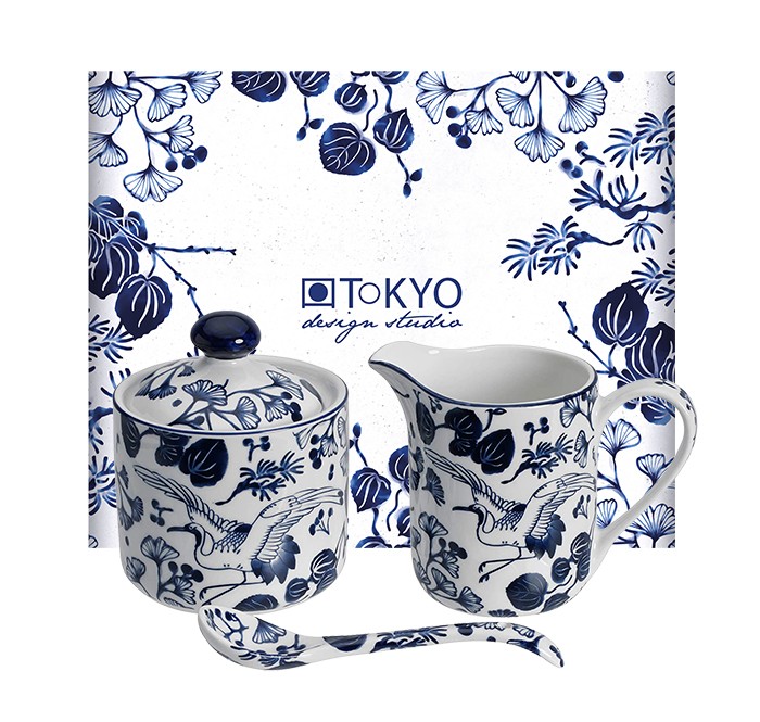 Ce set 3 pièces est composé d'un pot à sucre, d'un petit pichet à lait, et d'une cuillère en porcelaine aux motifs de fleurs japonaises. Le pot à sucre est d'une contenance de 166ml, le pichet à lait d'une contenance de 150ml. Cet ensemble en porcelaine japonaise est compatible au miro-ondes et au lave-vaisselle.
