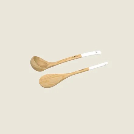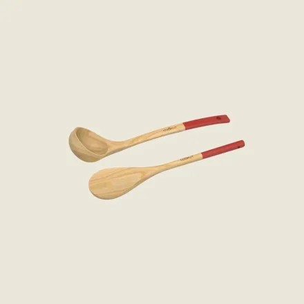 Set de cuillère et louche en bois idéal pour cuisiner sans abîmer votre cocotte et votre poêle.