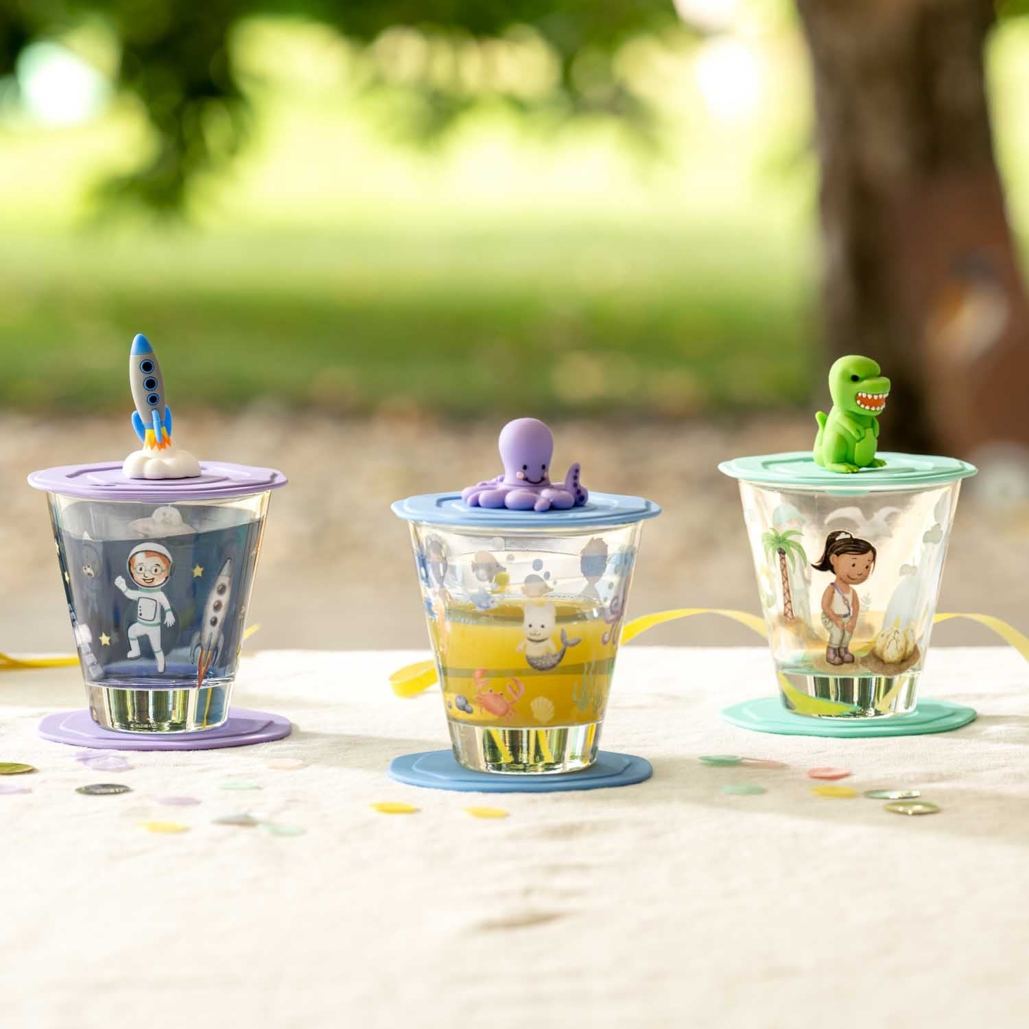 Pendant la pause entre les jeux, les petits ne vont pas assez vite et un verre peut tomber. Notre verre pour enfants BAMBINI AVENTURA ne sera pas facilement dérangé, car il repose particulièrement bien sur notre dessous de verre en silicone coloré. Le couvercle fusée prend soin de sa boisson préférée pendant que votre enfant se défoule et ne laisse aucun insecte indésirable s'introduire dans le verre. Avec notre set à boire Space pour enfants, boire est très amusant et c'est aussi un excellent cadeau pour la prochaine fête d'anniversaire d'enfant. Laissez les nouveaux sets à boire BAMBINI emménager pour vos petits et faites de boire une grande aventure !