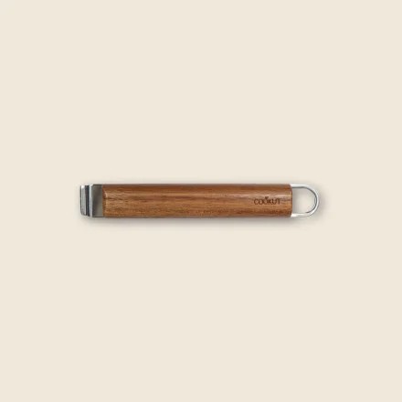 Poignée longue amovible en bois naturel compatible avec toute la gamme Merveilleuse inox : casseroles, poêles, sauteuse.