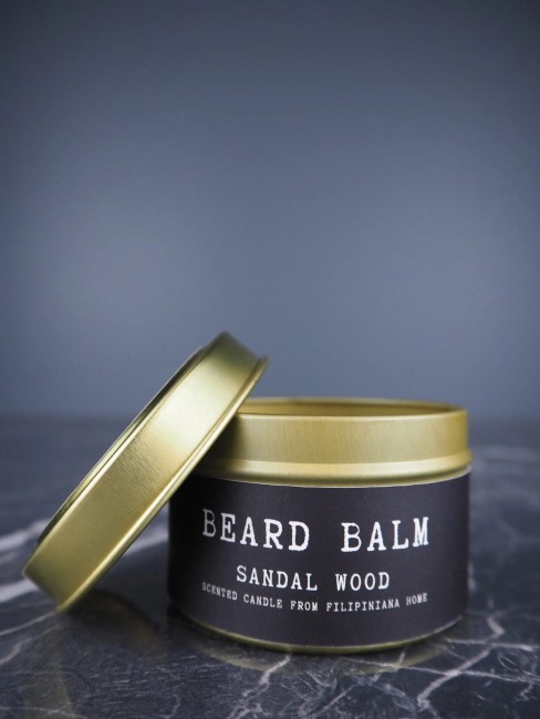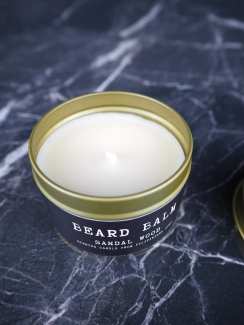 Laissez-vous tenter par cette bougie baume à barbe au bois de santal .