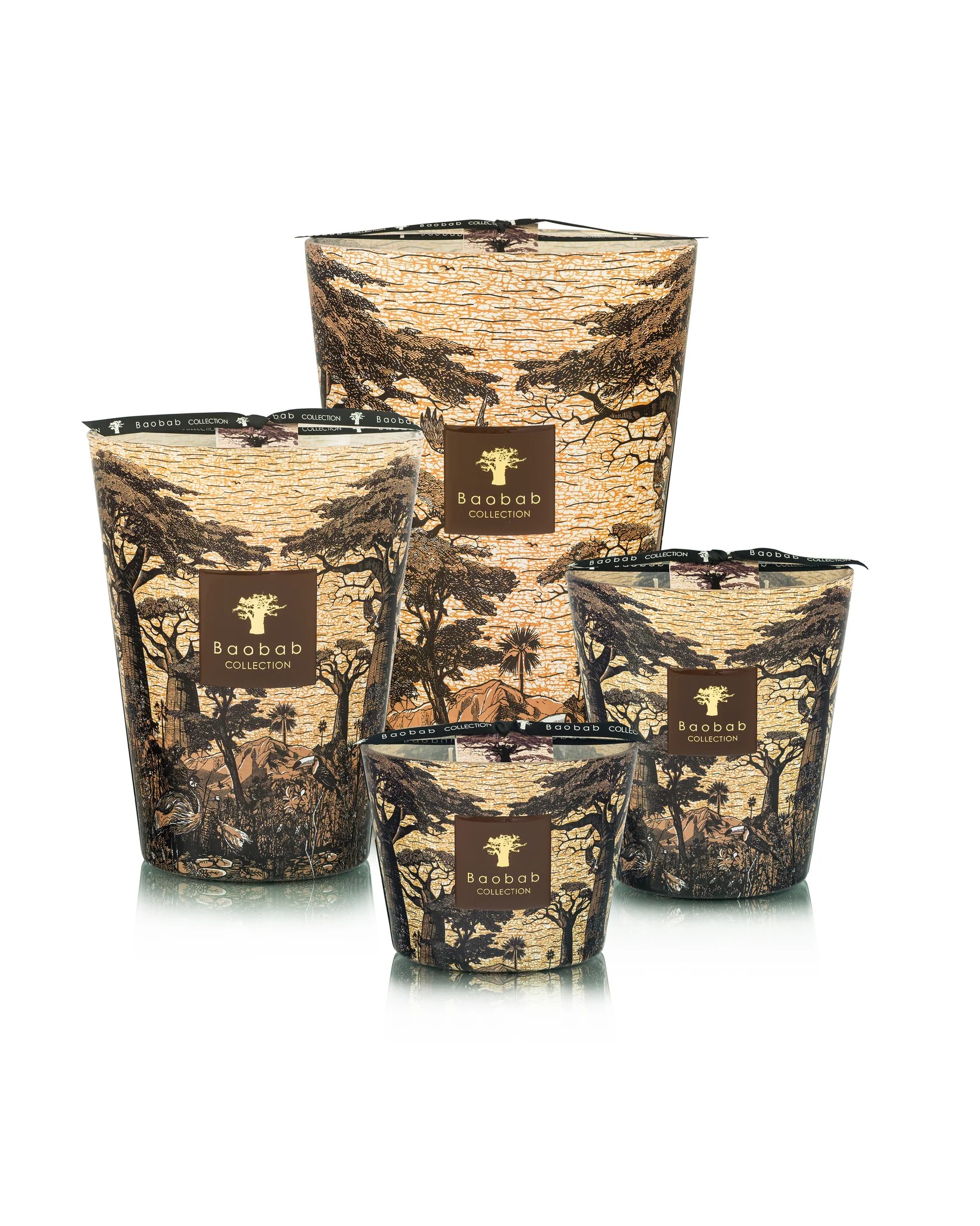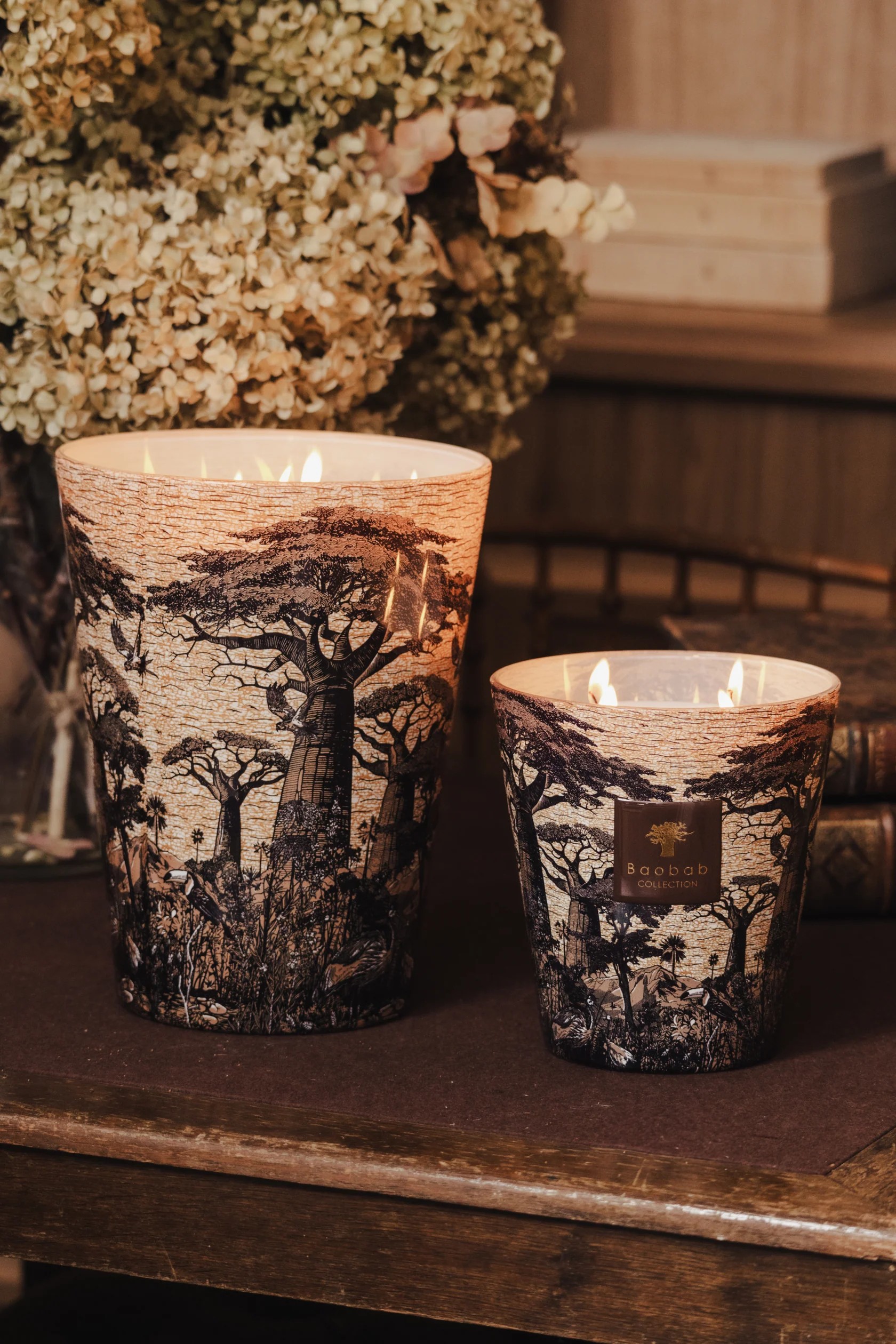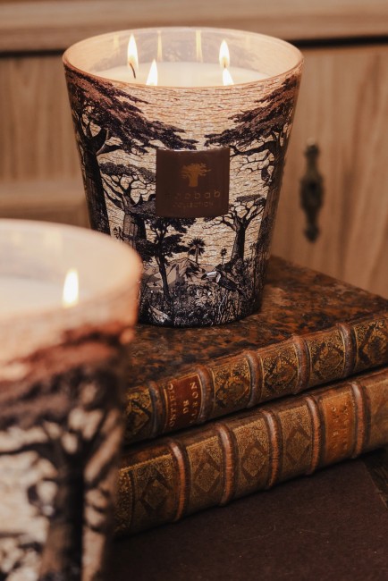 Les tons bruns et jaunes safran du dessin sur le verre sont en accord parfait avec son parfum boisé et épicé. La bougie devient un objet décoratif ethnique, suivant dans son allure l’ADN de notre marque.