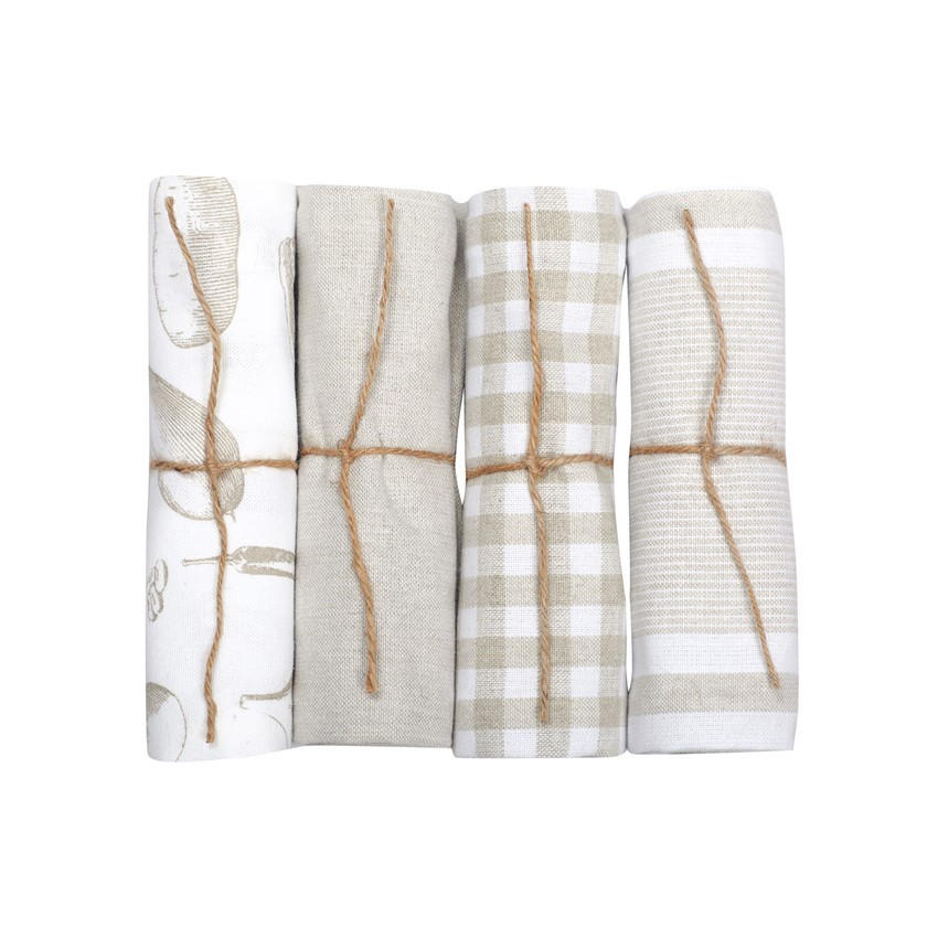 Lot de 4 torchons de Cuisine Blanc/Lin recyclé " 3 achetés 1 offert "