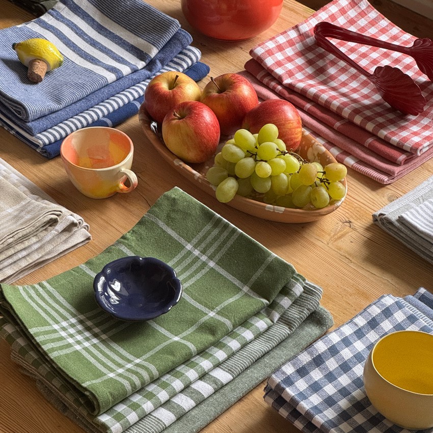 Des torchons de cuisine classiques : un mélange de motifs à carreaux, à rayures et imprimés !