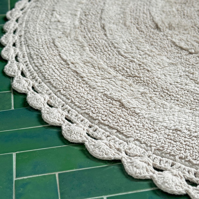 Le tapis de bain Rimini offre un effet crocheté tout en douceur avec des détails décoratifs le long du bord.