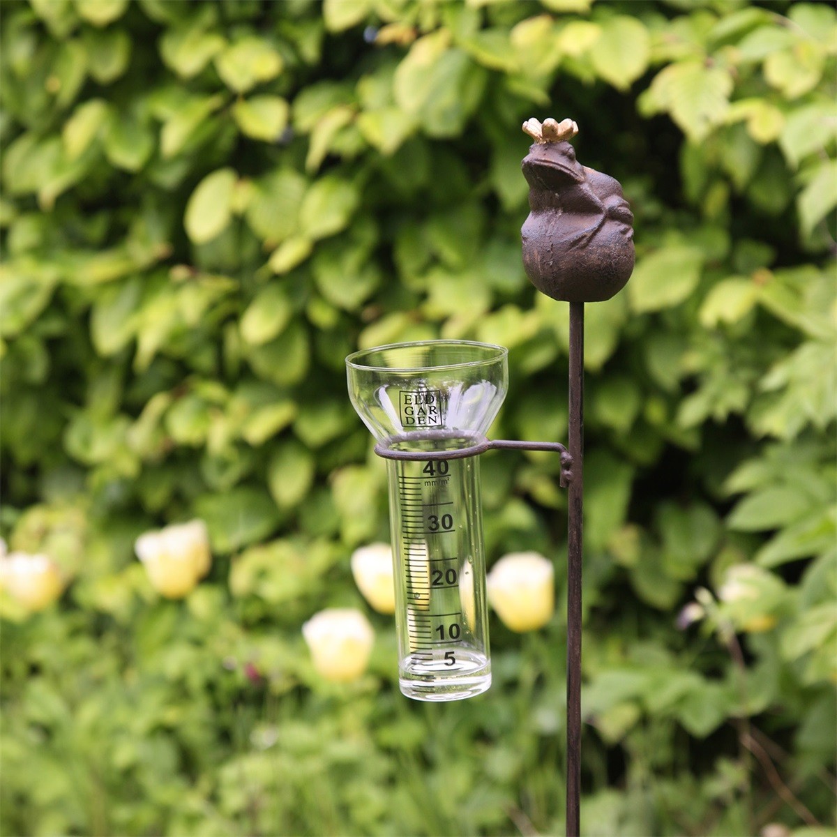 Le pluviomètre Grenouille Prince d'ELDgarden est une nouveauté du printemps 2026. Une grenouille à la couronne dorée orne le sommet du pluviomètre.