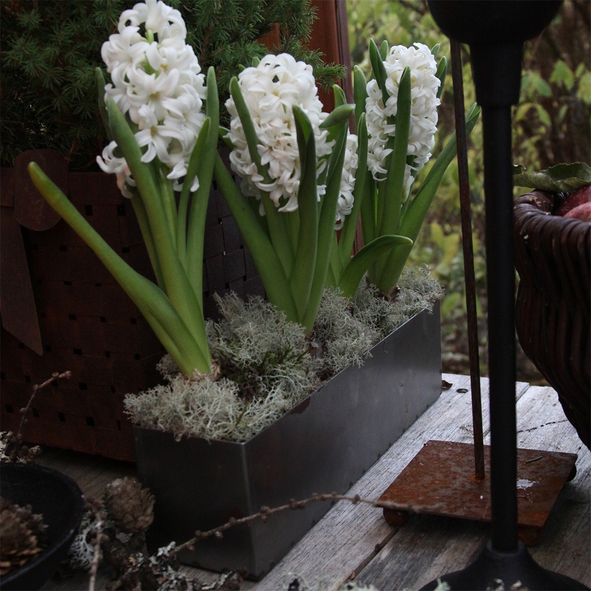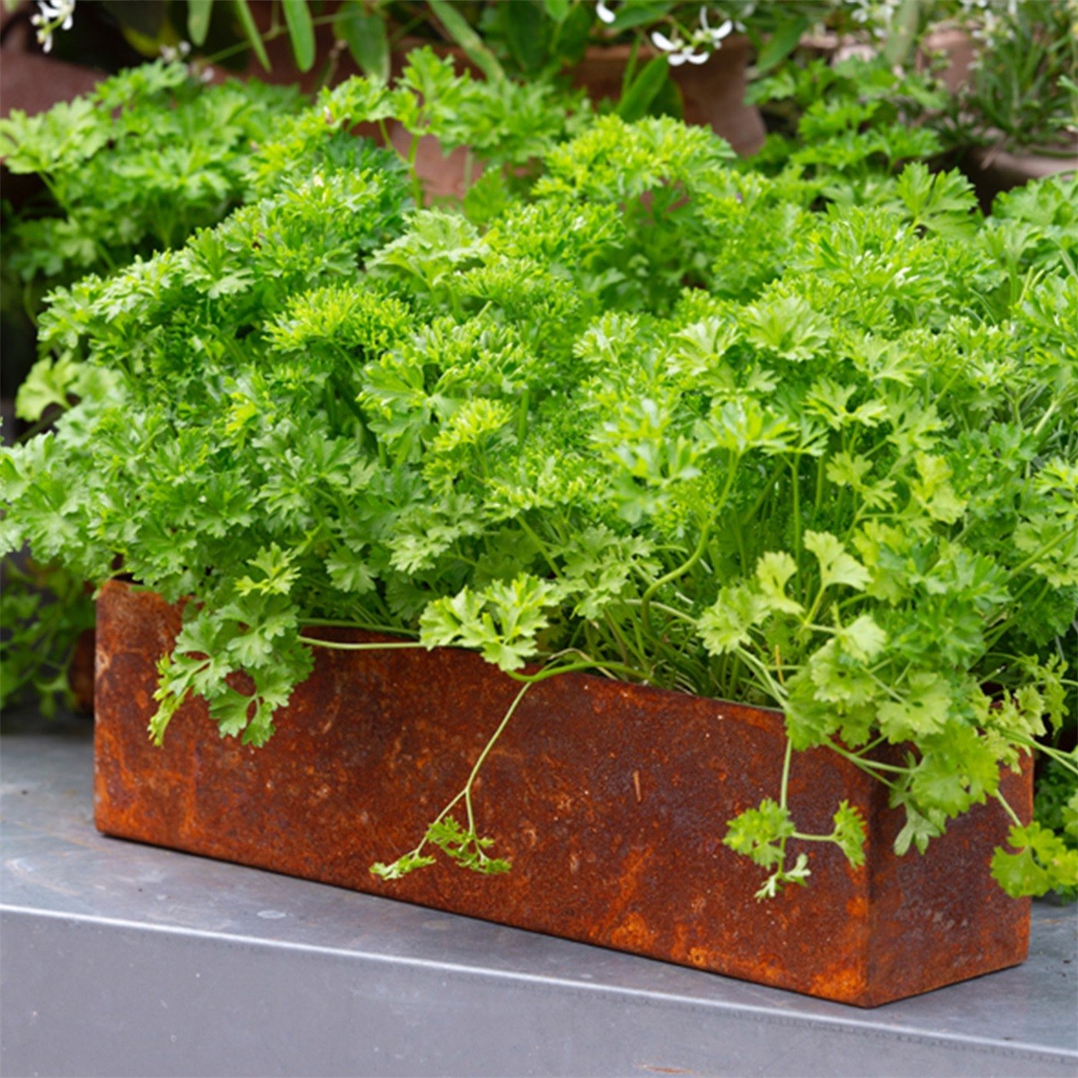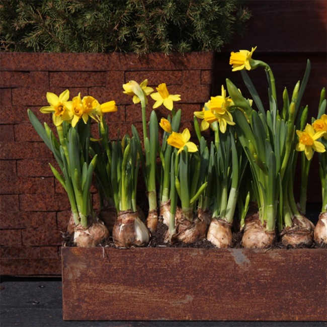 Ces pots sont en tôle ordinaire (et non en acier Corten). Si vous les placez dans la pelouse et que vous diluez 2 dl d'engrais (par exemple, de maïs bleu) dans de l'eau (dans un arrosoir de 10 litres muni d'un pulvérisateur) et que vous arrosez les pots deux fois par jour, ils rouilleront au bout de 3 à 5 jours.