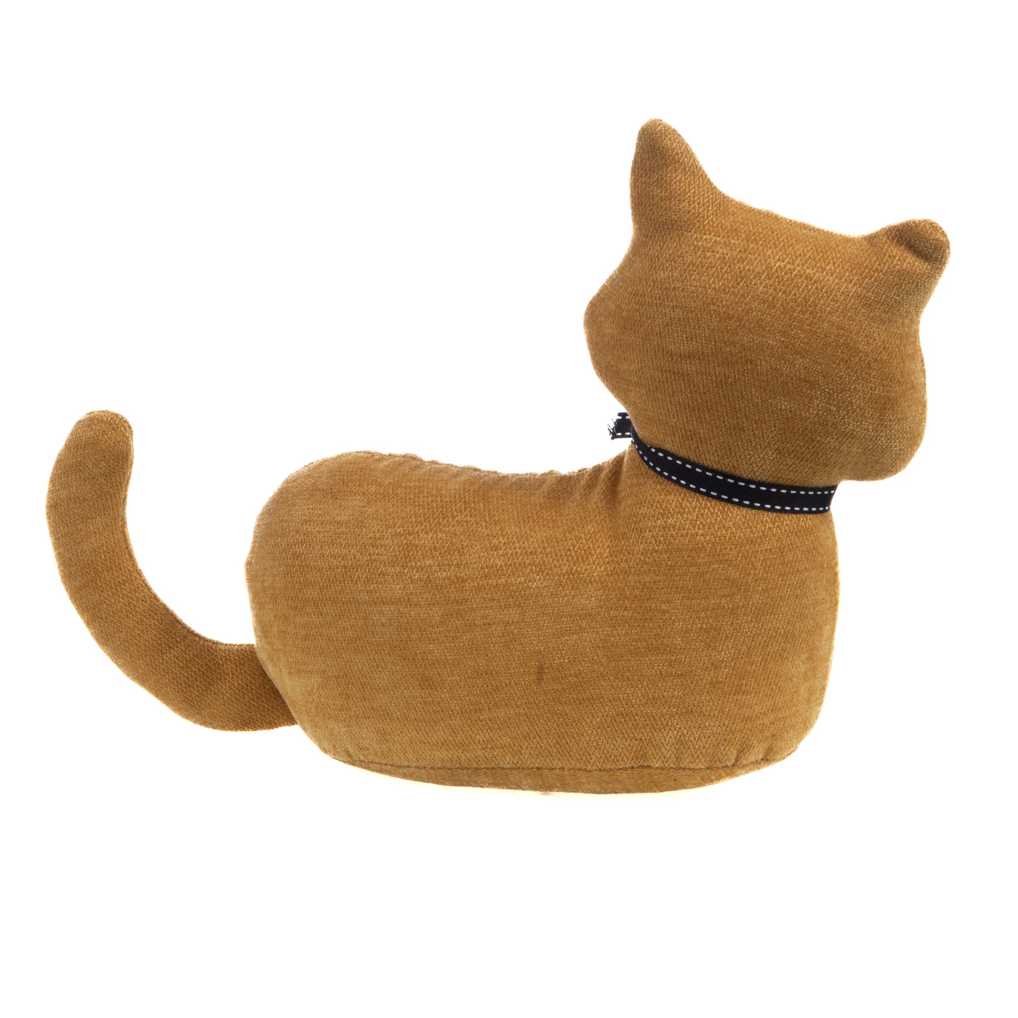 Cale-porte en forme de chat, enveloppe 100% polyester coloris moutarde.