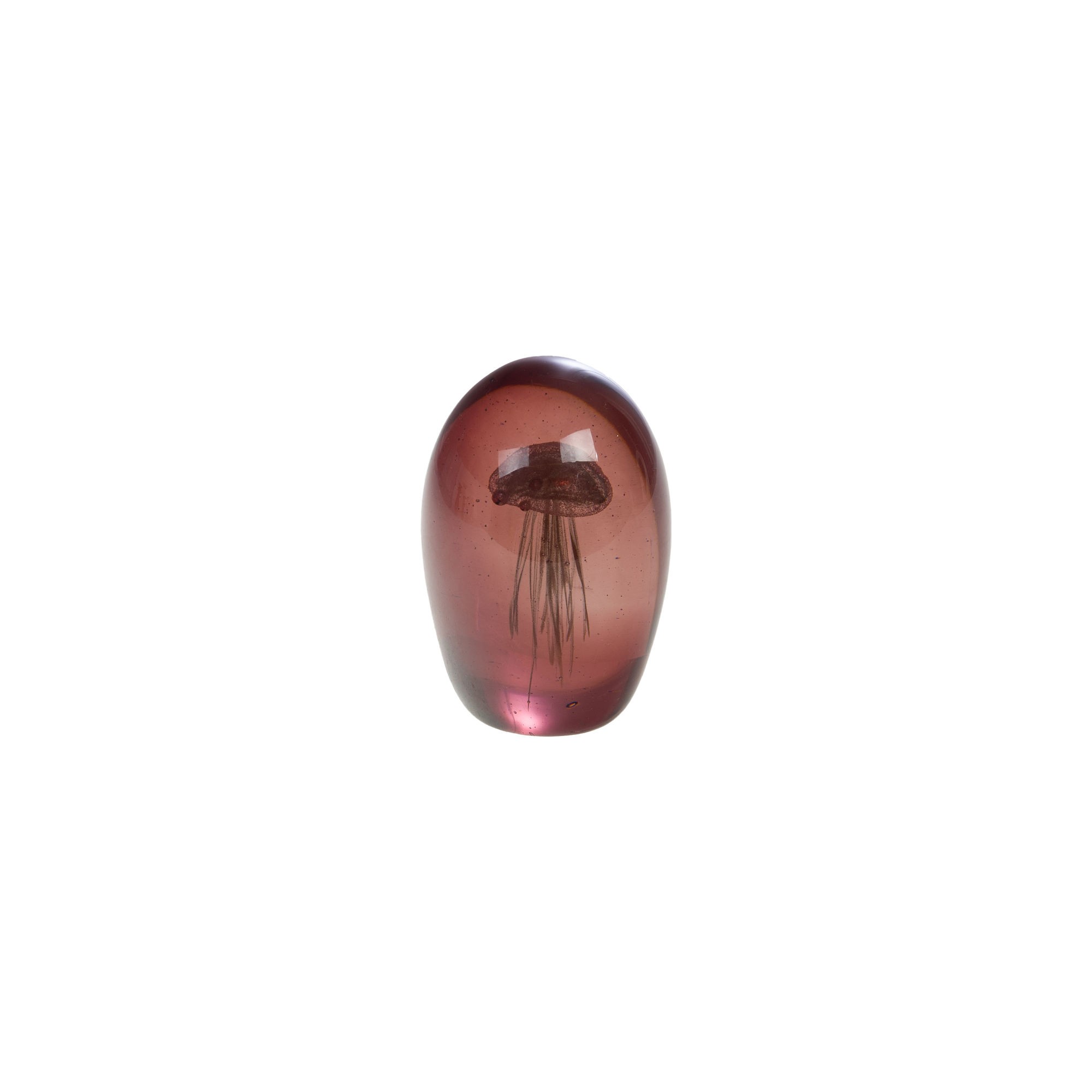 Sulfure décoratif en verre de 14 cm de hauteur, représentant une méduse stylisée dans un bloc de verre teinté sienne.