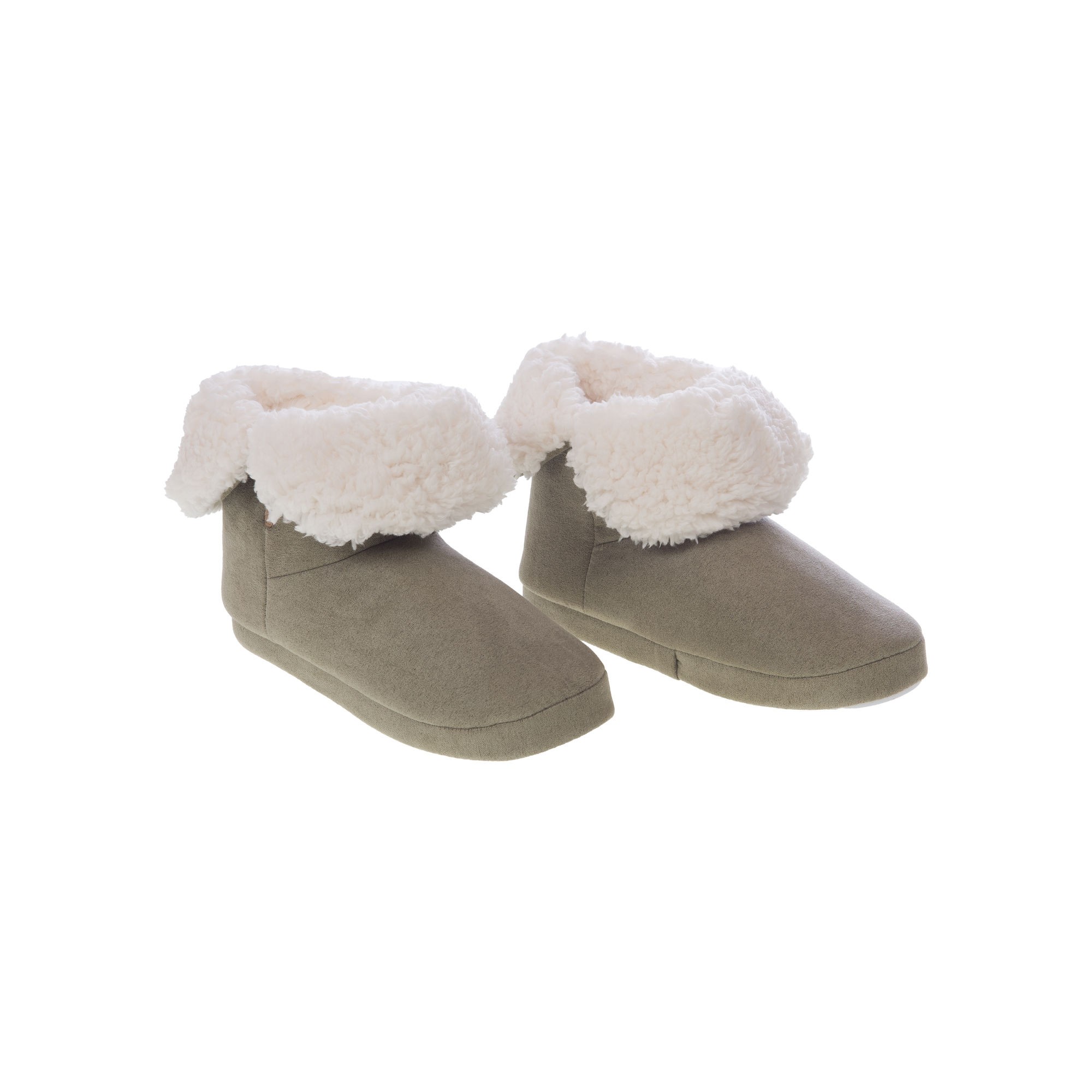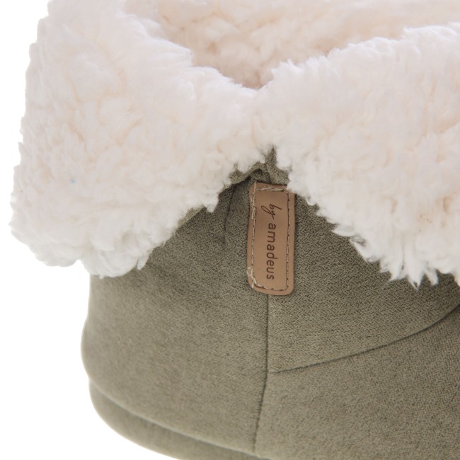 Chaussons coloris Kaki en 100% polyester, avec intérieur en fourure.