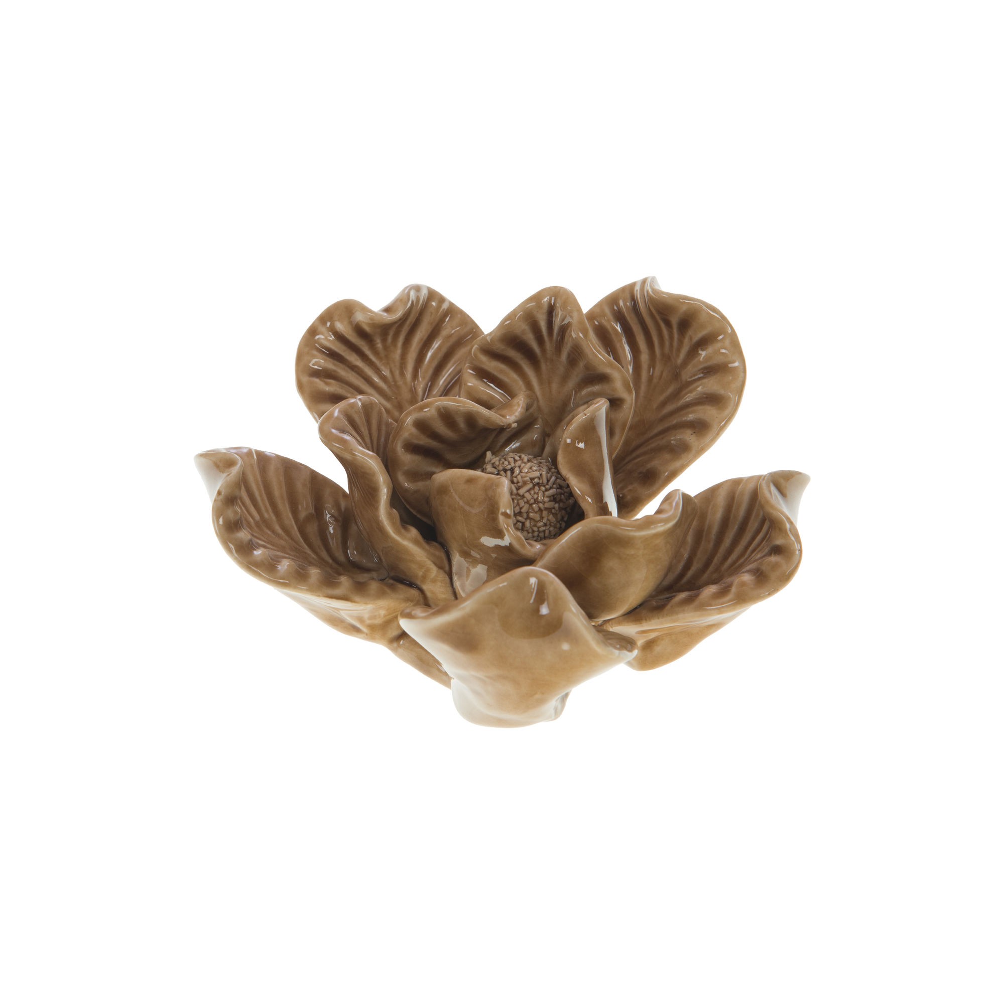 Fleur décorative en céramique émaillée couleur moka, idéale pour une déco nature.