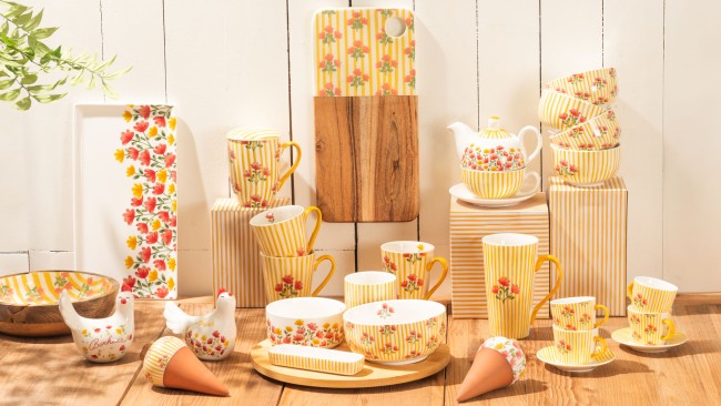 Service apéritif « Louise » composé d’un plat en bois (plateau) et de 4 bols en porcelaine.