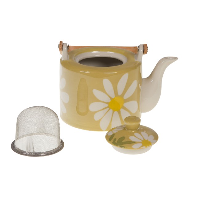 Théière infuseur en grès décor « Daisy », design floral imprimé et anse en bois apportant une touche naturelle.