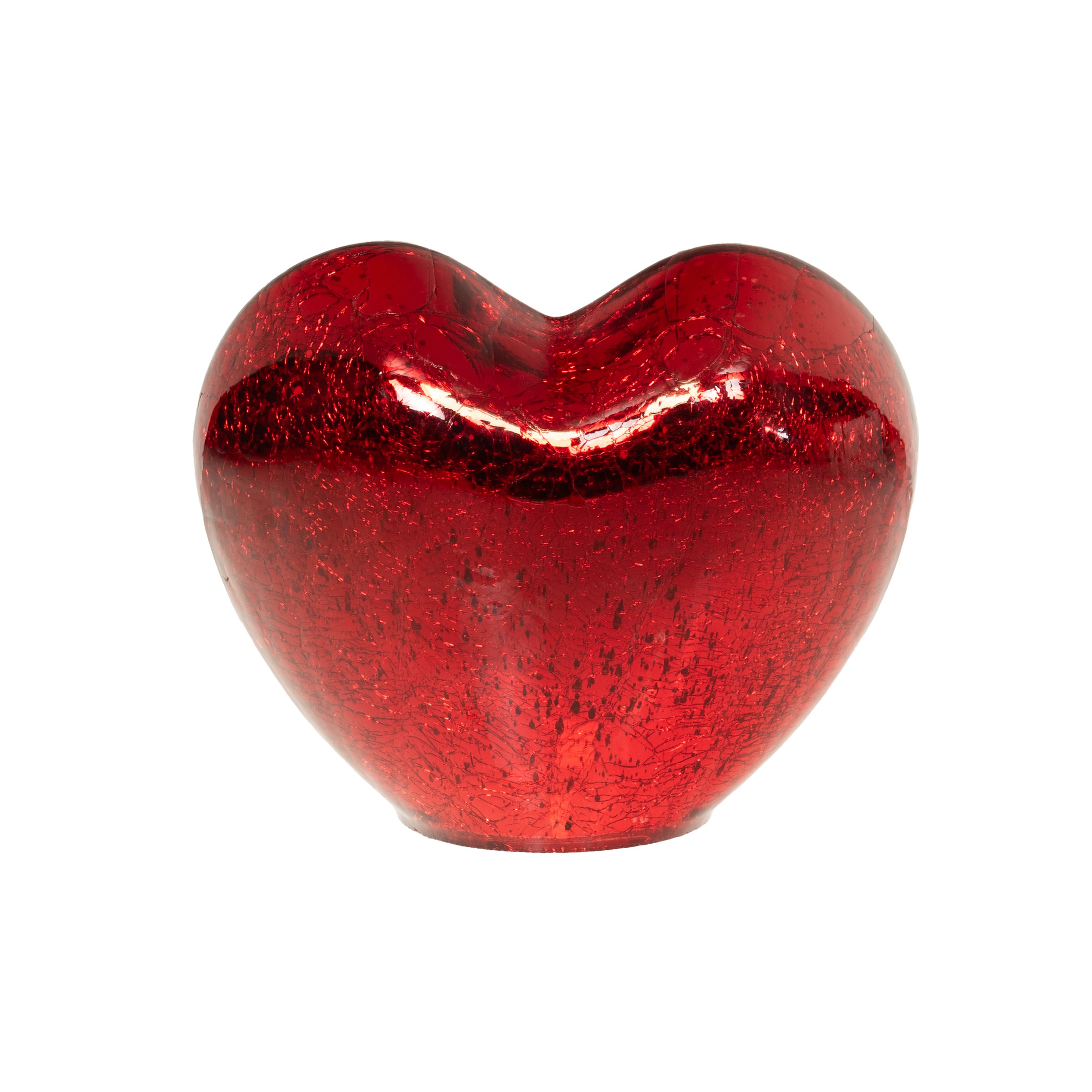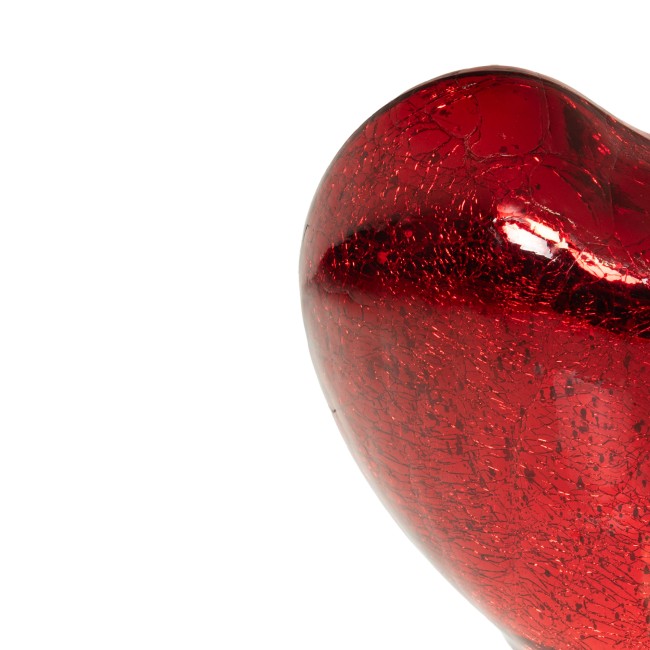 Lampe à poser en verre soufflé coloris rouge en forme de cœur, équipée d'un éclairage LED intégré.