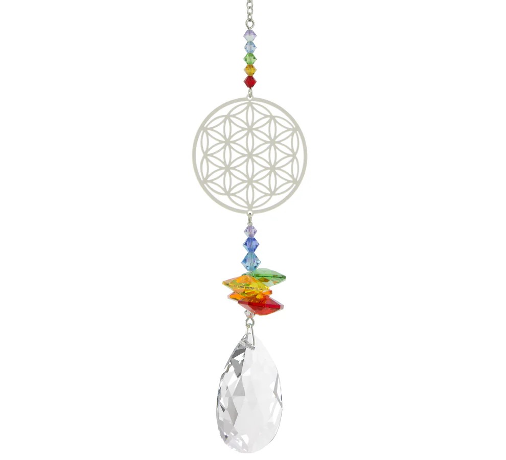 - Description: Embelli avec du cristal autrichien de qualité. Chaîne et silhouette en laiton nickelé. Amande 38 mm. Hauteur totale 24 cm. Livré avec un sachet en tissu d'organdi et une ventouse.