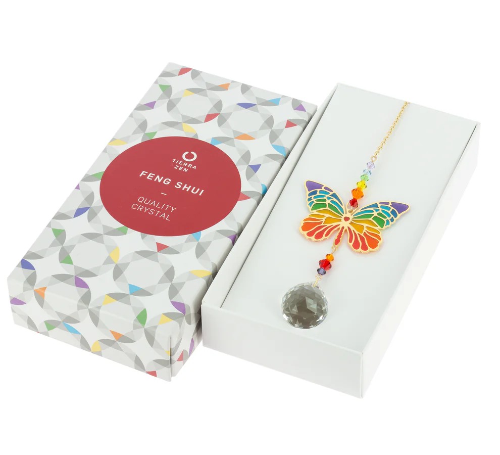 Les cristaux Feng Shui sont embellis avec du cristal autrichien de qualité. Les couleurs chatoyantes de la silhouette en métal présentent des transparences qui rappellent les vitraux des cathédrales. Ces merveilleuses decorations rempliront votre maison de lumière, de vie et de joie.