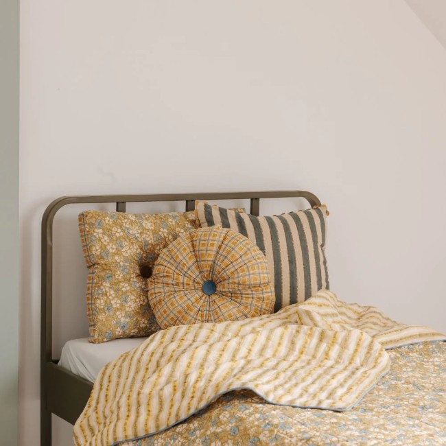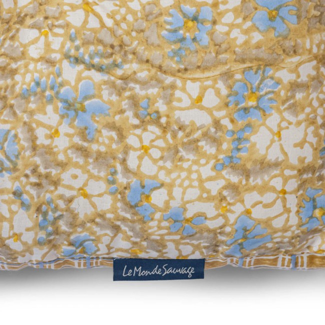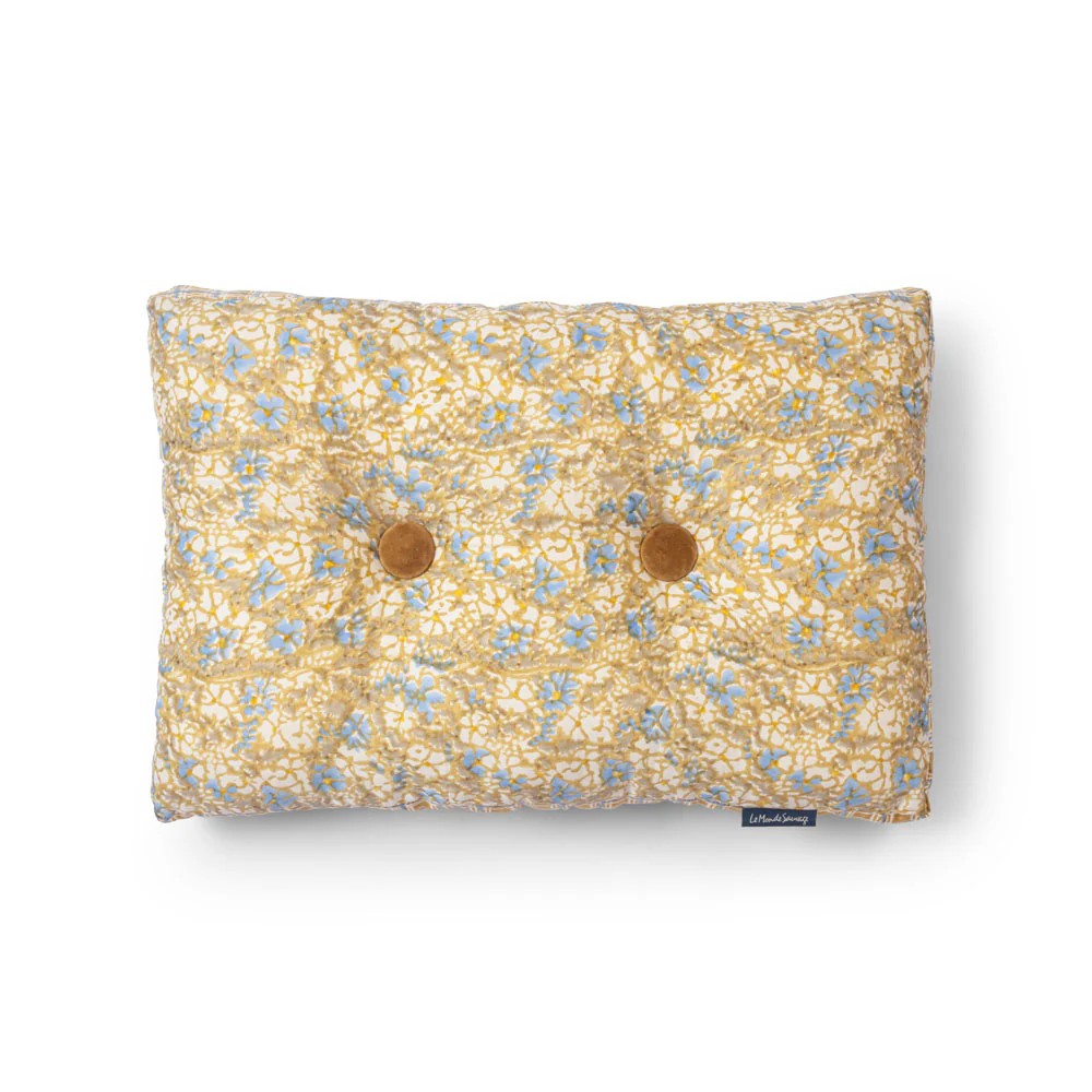 Imprimé suivant la technique du block print, le coussin Boréal met à l’honneur nos motifs signature. Capitonné avec ses boutons en velours pour lui assurer une bonne tenue, il est idéal en dossier de banquette. De fabrication 100 % artisanale, chaque pièce est unique et peut présenter certaines irrégularités.