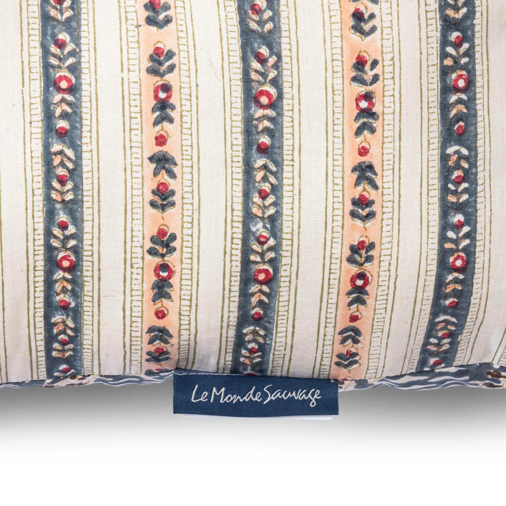Imprimé suivant la technique du block print, le coussin Boréal met à l’honneur nos motifs signature. Capitonné avec ses boutons en velours pour lui assurer une bonne tenue, il est idéal en dossier de banquette. De fabrication 100 % artisanale, chaque pièce est unique et peut présenter certaines irrégularités.
