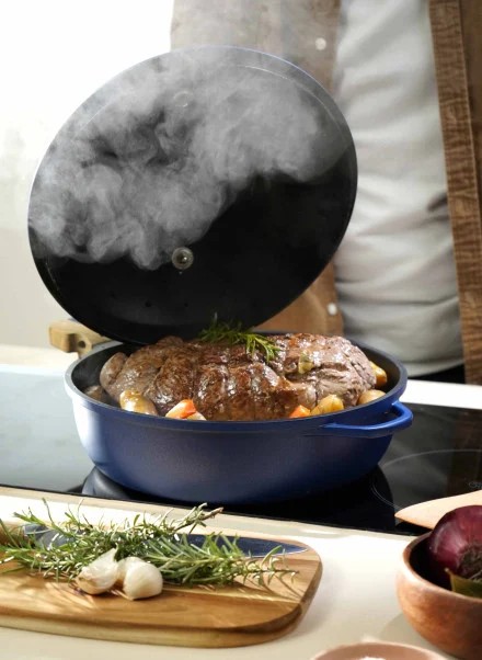 La fabuleuse poêle 8 en 1 de Cookut saura trouver sa place dans votre cuisine, parfaite pour la préparation de vos oeufs au plat, poulets rôtis, légumes vapeur, blanquette de veau, frites, gratin, gâteaux, pizza... Tout est possible !