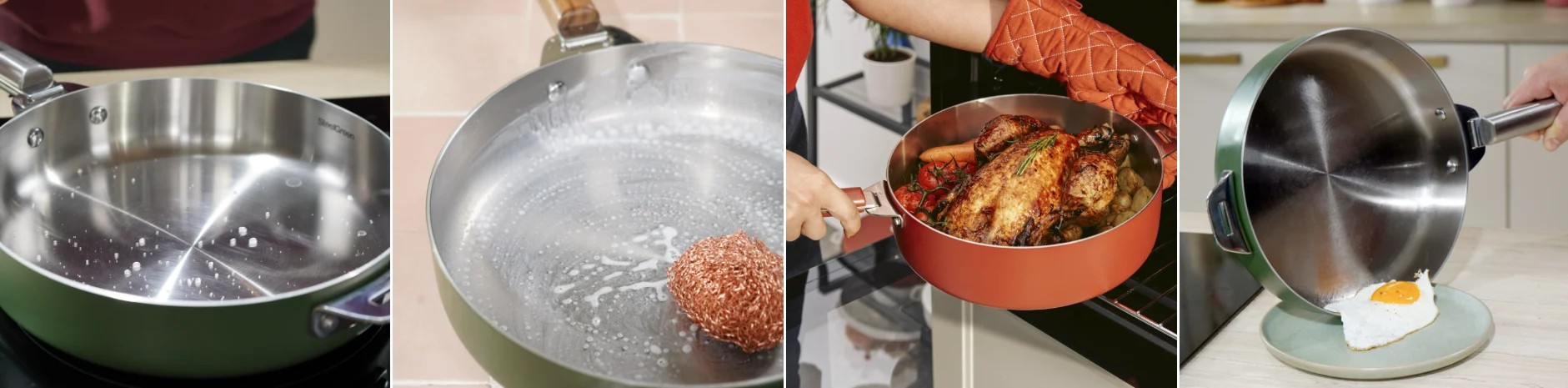 - Frotter la surface intérieure à nettoyer de l’ustensile de cuisson de manière circulaire avec l’éponge, en faisant mousser et rincer à l’eau claire.