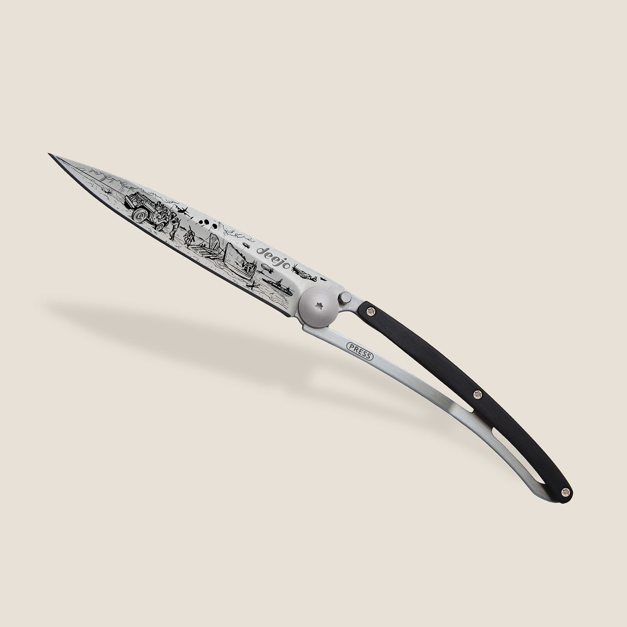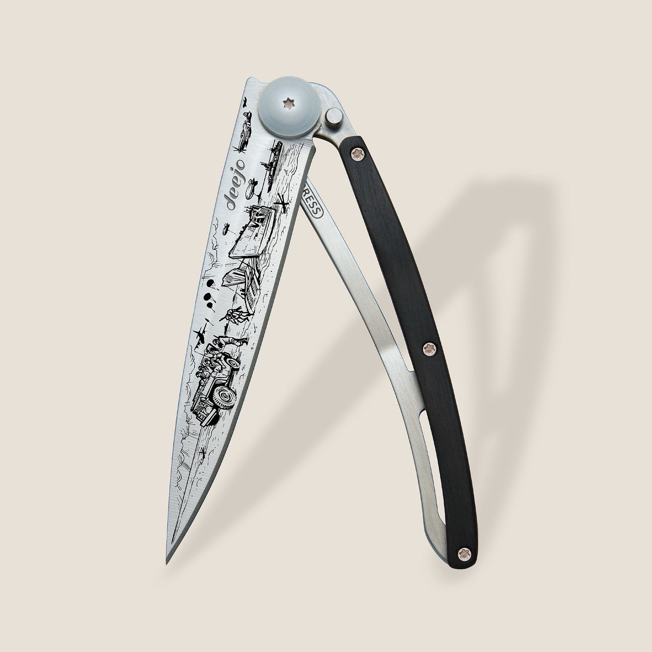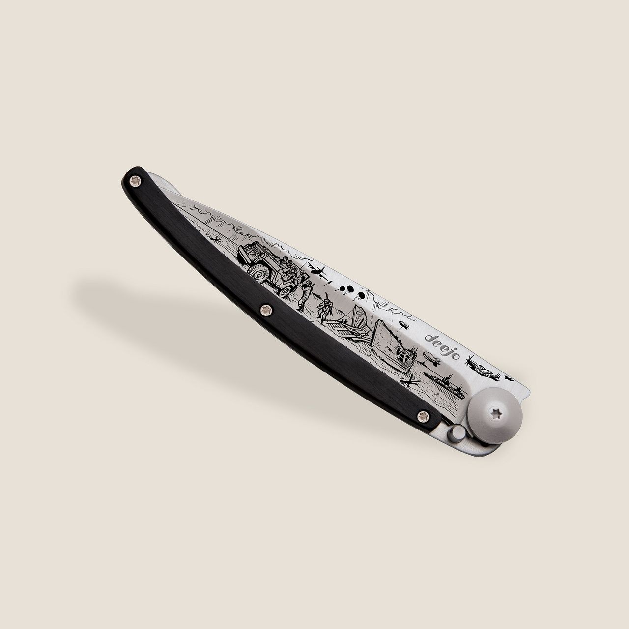 Le bois d’ébène qui orne le manche de ce couteau Deejo est une véritable ode aux noirs profonds. Cette essence de bois exceptionnelle a la particularité d'être pratiquement insensible à l’humidité ambiante. Elle s’avère ainsi être ainsi la plus dense, la plus résistante et la plus précieuse qui soit, idéale pour cette magnifique pièce de coutellerie.