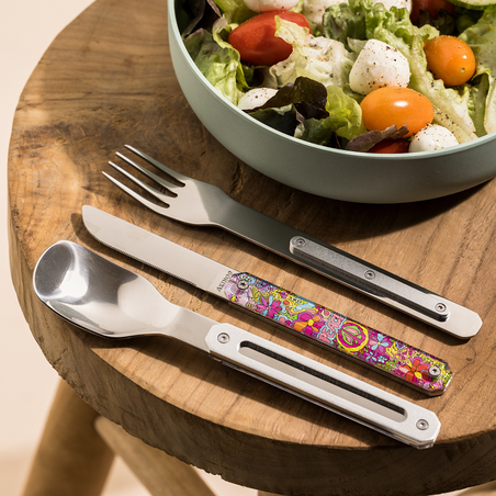 Flower power dans votre pause déjeuner. Le modèle Peace diffuse une énergie joyeuse, libre et colorée, pour des repas à contre-courant.