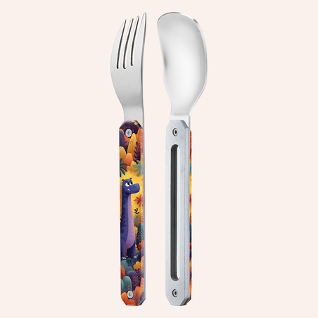 Taillé pour les petites faims nomades, ce couvert Akinod ""Dinosaure"" réveille votre imaginaire : pratique, léger, et prêt à dévorer les pauses gourmandes.