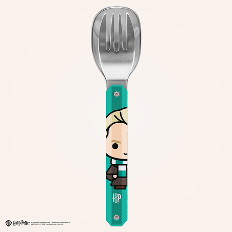 Couverts en acier inoxydable martensitique 2CR14, finition poli miroir. Composé d’une cuillère et d’une fourchette 4 dents. Manche en polymère (PC) transparent décoré. Assemblage aimanté. Livré avec étui de transport en polypropylène rigide (PP). Compatible lave-vaisselle.