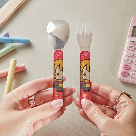 Couverts en acier inoxydable martensitique 2CR14, finition poli miroir. Composé d’une cuillère et d’une fourchette 4 dents. Manche en polymère (PC) transparent décoré. Assemblage aimanté. Livré avec étui de transport en polypropylène rigide (PP). Compatible lave-vaisselle.