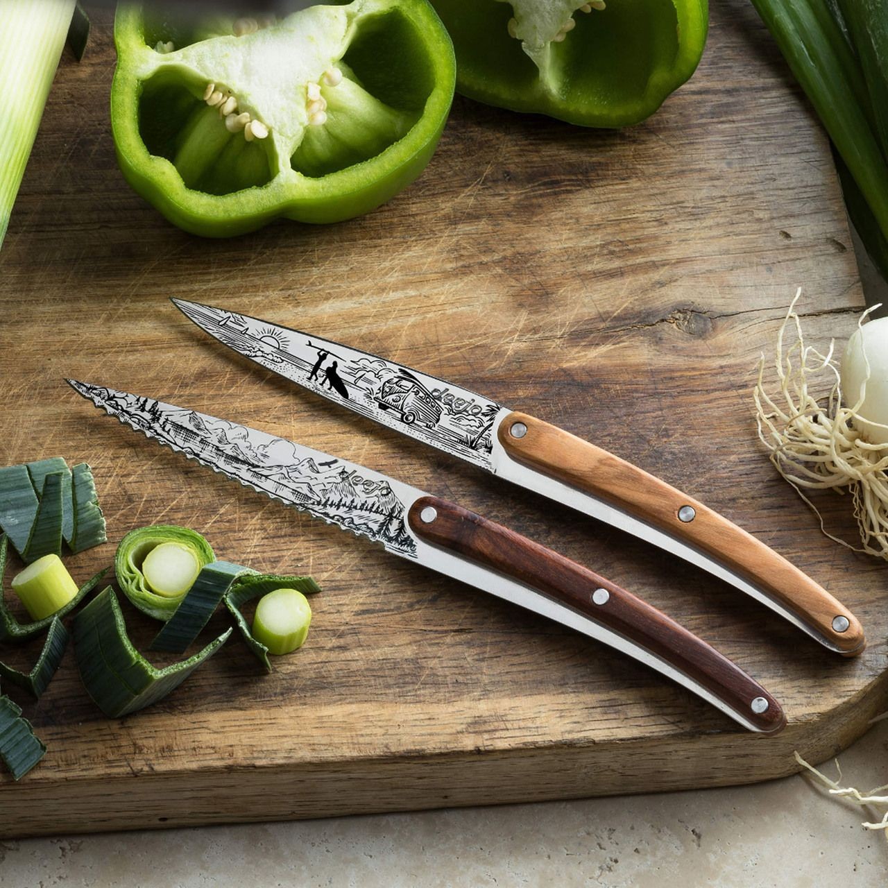 Tranchez, ciselez, découpez, émincez, épluchez avec cette paire de couteaux d’office au tranchant redoutable qui sentent bon les vacances, même à la maison.