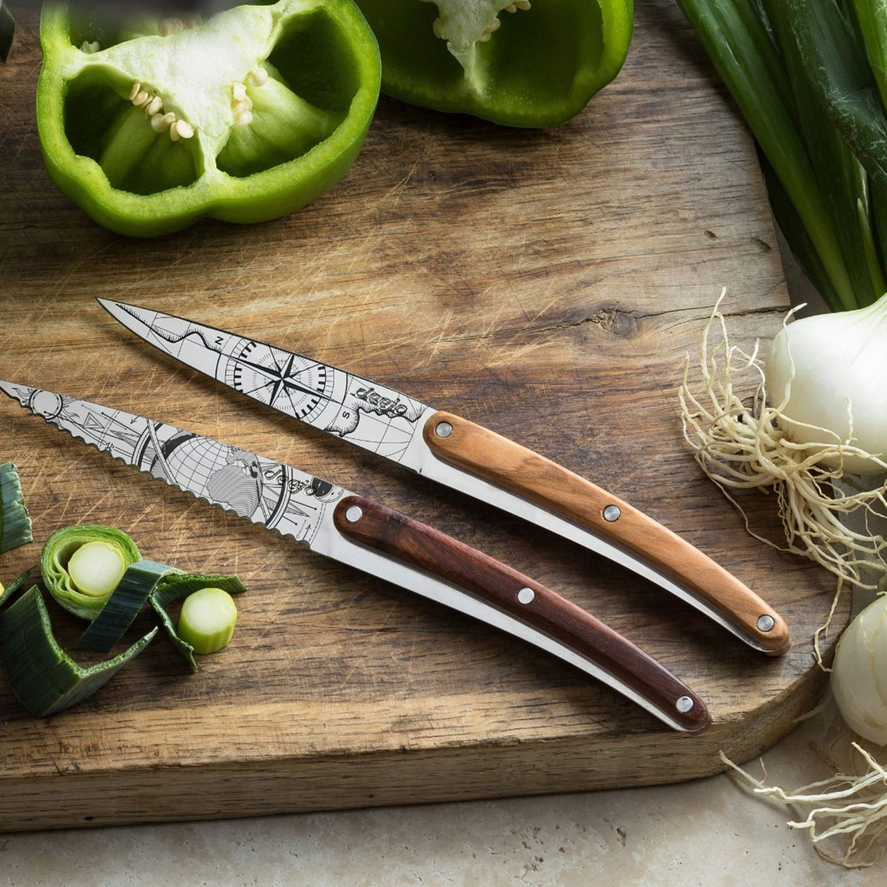 Une paire de couteaux au tranchant redoutable pour cuisiner aussi bien les fruits et légumes de saison locaux que des plats exotiques qui évoquent un ailleurs lointain.