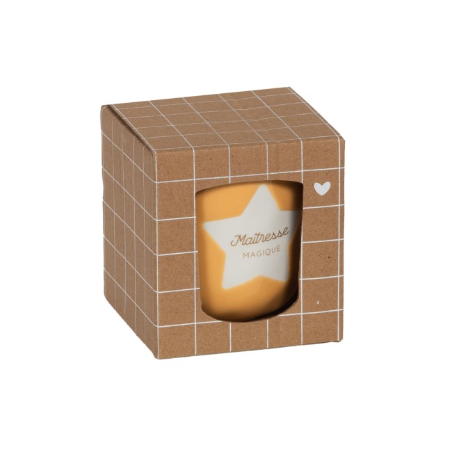 Finition émaillée couleur jaune safran avec motif étoile et inscription 'Maîtresse'