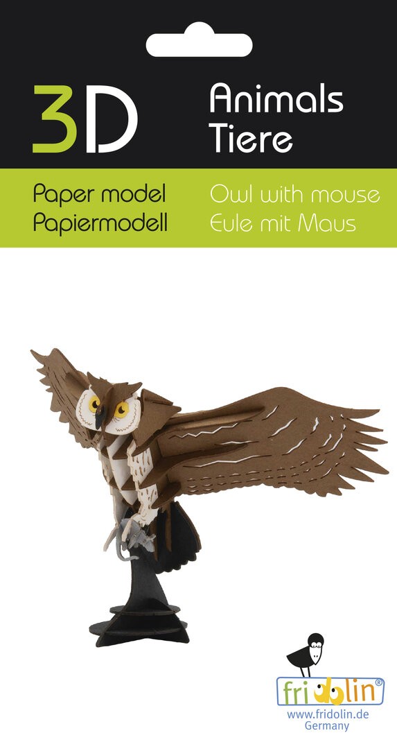Optez pour une activité ludique avec ce hibou et sa souris à monter en maquette 3D. L'animal est à assembler à partir des pièces détachées contenues dans le sachet. Les pièces sont en carton spécial, découpées au laser. Les instructions de montage sont dans le kit. Cette activité amusante et ludique convient pour petits et grands.