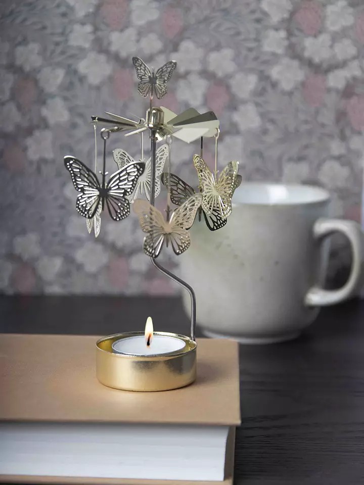 Joli photophore à motifs de papillons dorés. Idéal comme cadeau ou comme élément décoratif pour votre intérieur.