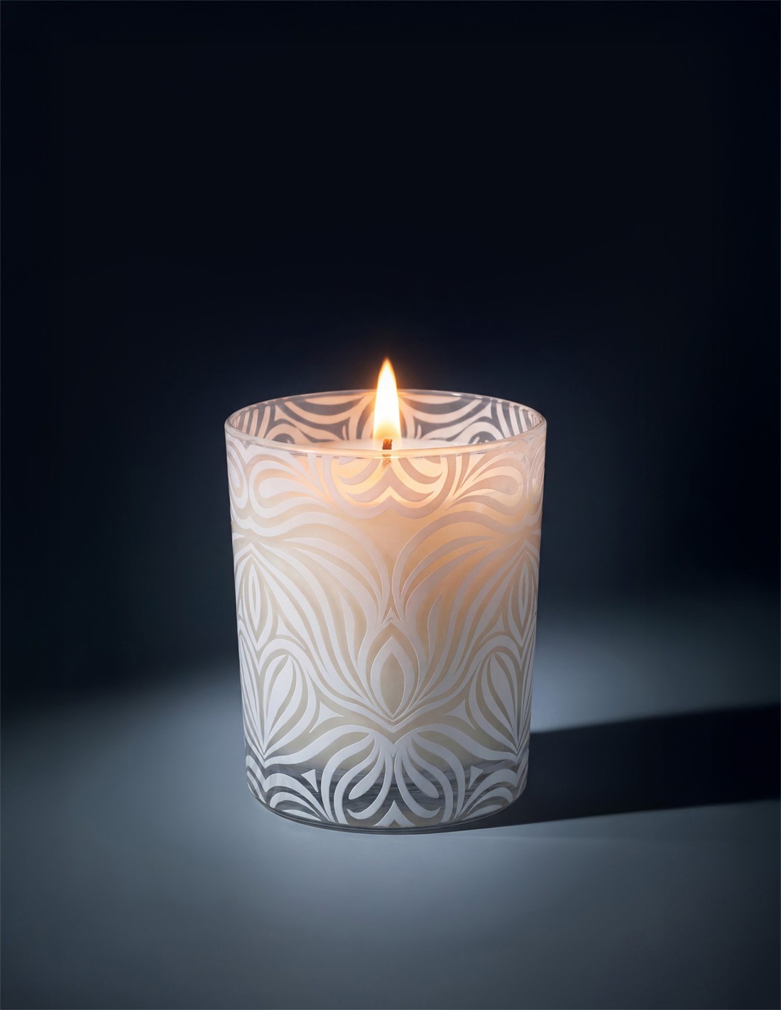 Son contenant en verre, au design imprimé artisanalement, met en valeur la pureté de la fragrance et s’intègre naturellement dans tous les univers déco, du plus classique au plus contemporain.