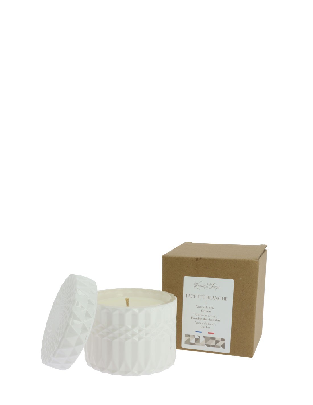 La Bougie Facette Blanche est associée au parfum Poudre de Riz. Un univers envoûtant. Cette fragrance nostalgique et délicate est souvent associée à des souvenirs d'antan et à une élégance intemporelle.