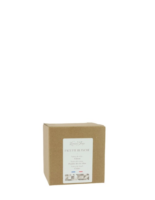 Nous croyons en l'importance de l'expérience globale, c'est pourquoi chaque Bougie Facette Blanche est livrée dans une boîte individuelle soigneusement conçue. Cette boîte, qui renferme le trésor aromatique à l'intérieur, reflète notre engagement envers la qualité et l'esthétique. Ouvrir cette boîte, c'est plonger dans un univers de raffinement et de délicatesse, une préfiguration de l'expérience olfactive qui vous attend.