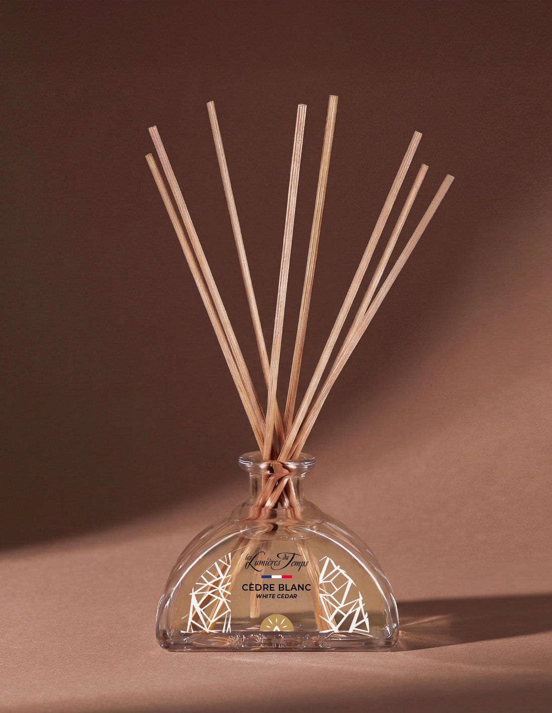 Diffuseur d'intérieur livré dans sa boîte kraft avec ses bâtonnets en rotin.