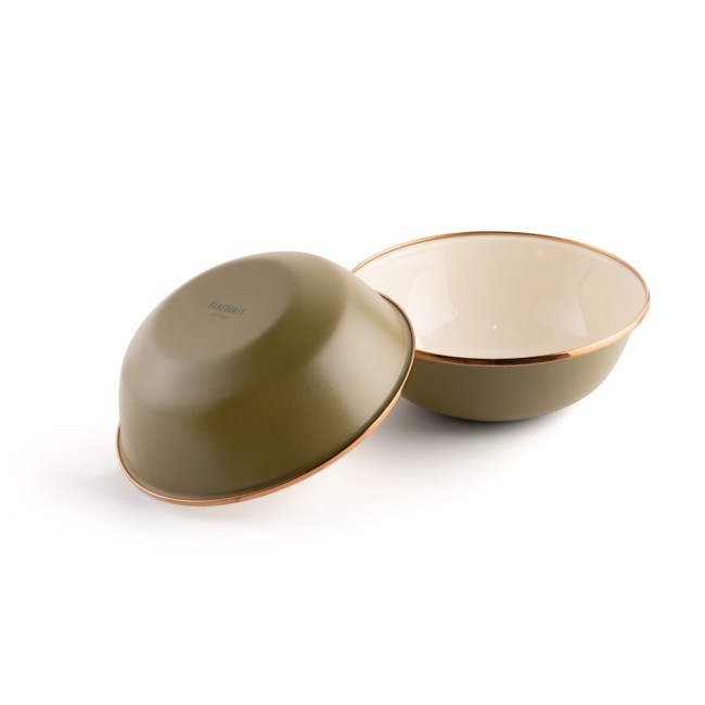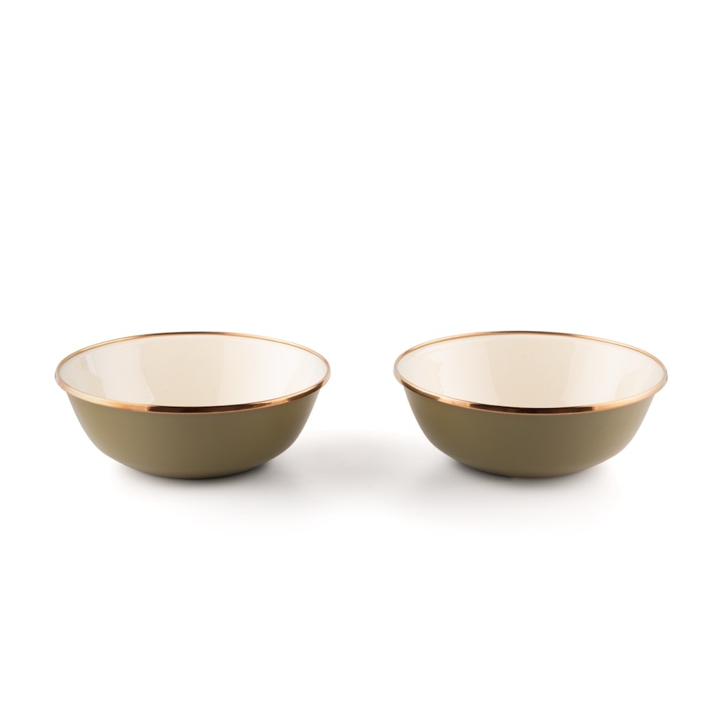 Cette collection de vaisselle émaillée avec son élégante coloration bi-ton se décline pour nos ensembles de bols, d'assiettes creuses, de tasses, d'assiettes et de gobellets.