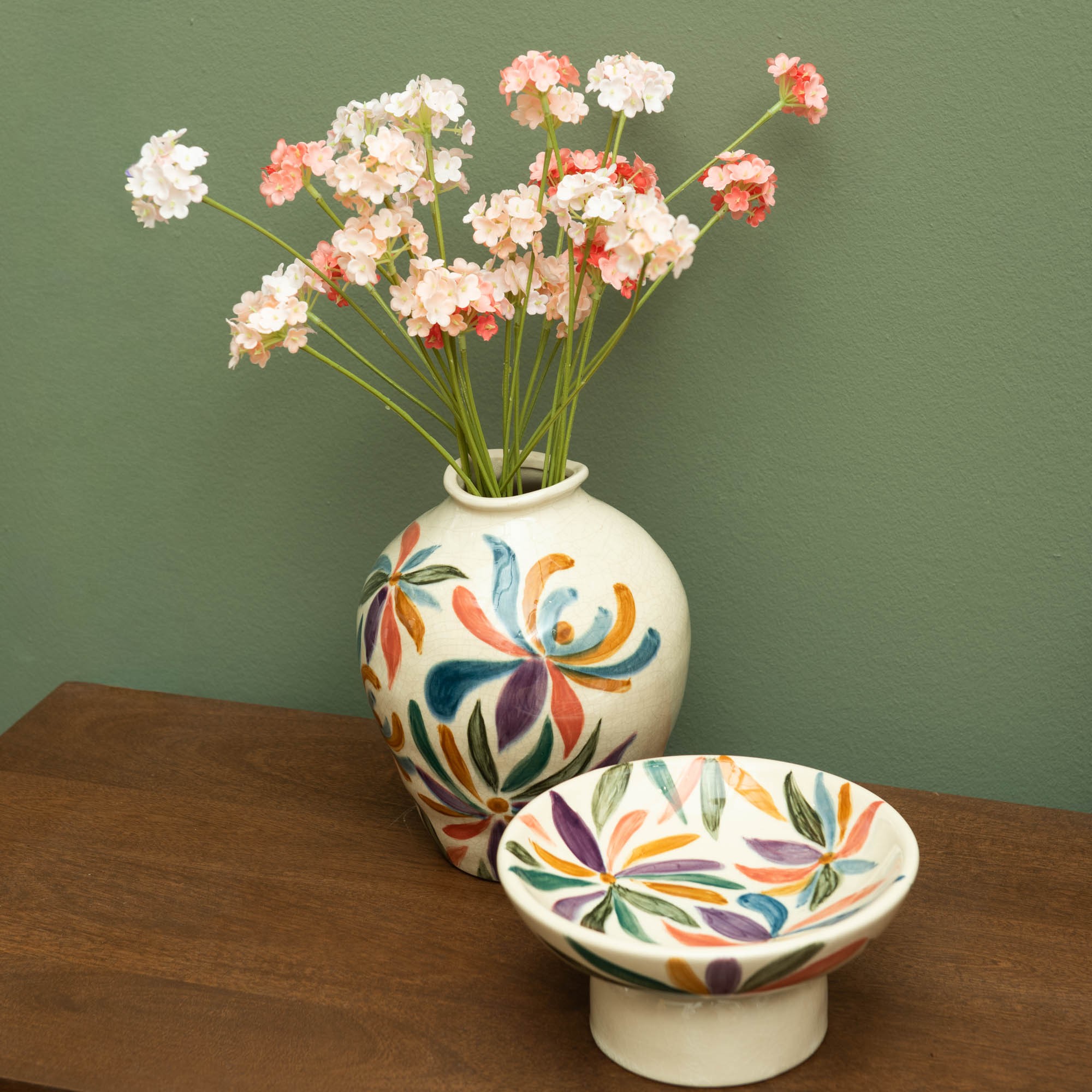 Design floral coloré apportant une touche artisanale et estivale.