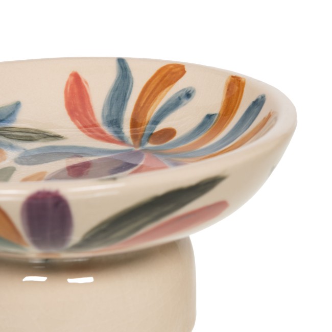 Coupe décorative Auralys en céramique émaillée (Ø 19 cm, H 9 cm) : pièce artisanale au décor peint multicolore.