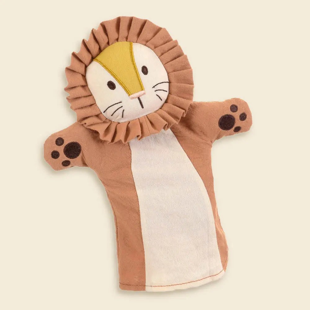 En coton naturel brodé, cette marionnette est prête à participer à toutes sortes d'histoires merveilleuses.