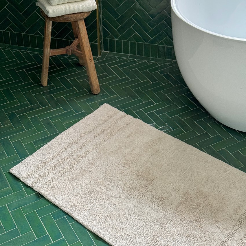 Un tapis rectangle pour la salle de bain avec un joli design.