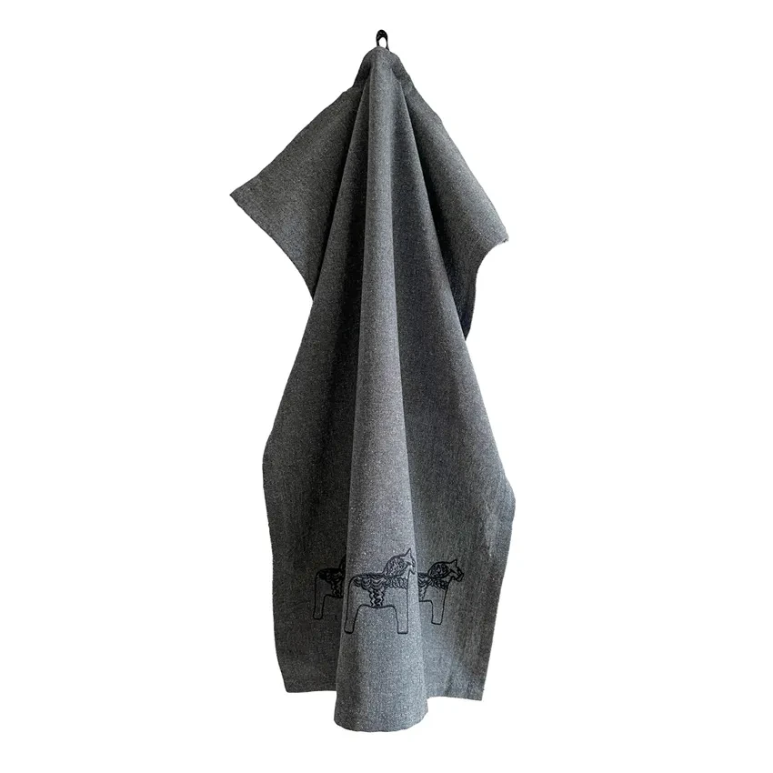 Des torchons traditionnels brodés de chevaux de Dalécarlie, un classique indémodable. Le cheval de Dalécarlie est un symbole de la Mora et de la Dalécarlie, une région de vallées suédoises, mais aussi de toute la Suède. Ce motif est brodé sur ces torchons de la marque Recycled by Wille, parfaits pour une décoration de style champêtre. Fabriqués à partir de 99 % de tissu recyclé, chaque torchon nécessite l'utilisation de chutes de tissu issues de la production d'environ 35 t-shirts. Nous avons à cœur le respect de l'environnement et des personnes, tout en créant de magnifiques objets de décoration pour votre intérieur.