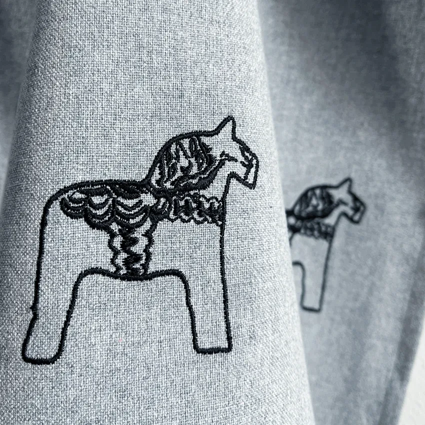Des torchons traditionnels brodés de chevaux de Dalécarlie, un classique indémodable. Le cheval de Dalécarlie est un symbole de la Mora et de la Dalécarlie, une région de vallées suédoises, mais aussi de toute la Suède. Ce motif est brodé sur ces torchons de la marque Recycled by Wille, parfaits pour une décoration de style champêtre. Fabriqués à partir de 99 % de tissu recyclé, chaque torchon nécessite l'utilisation de chutes de tissu issues de la production d'environ 35 t-shirts. Nous avons à cœur le respect de l'environnement et des personnes, tout en créant de magnifiques objets de décoration pour votre intérieur.