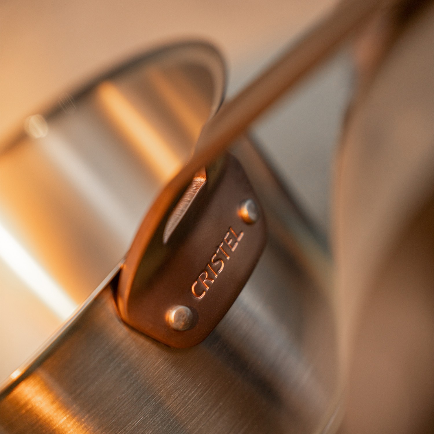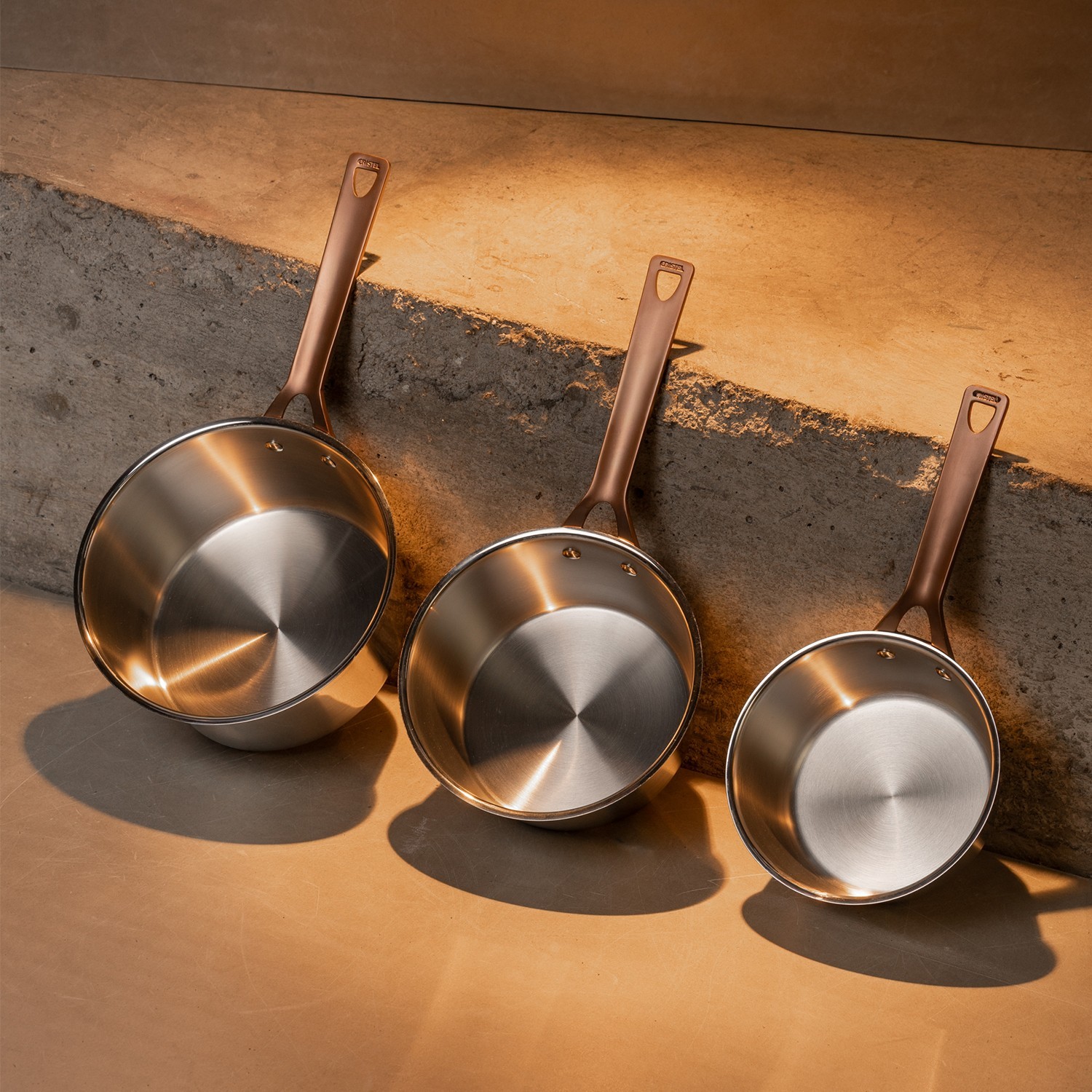 Casserole en inox brossé à poignée fixe cuivrée, de la nouvelle collection anniversaire Bicentenaire à l'occasion des 200 ans de savoir-faire.