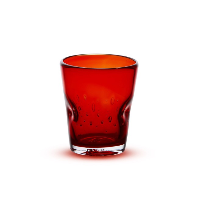 Un verre fabriqué à partir de pâte de verre soufflée à la main, puis pressé à chaud pour obtenir sa forme caractéristique.