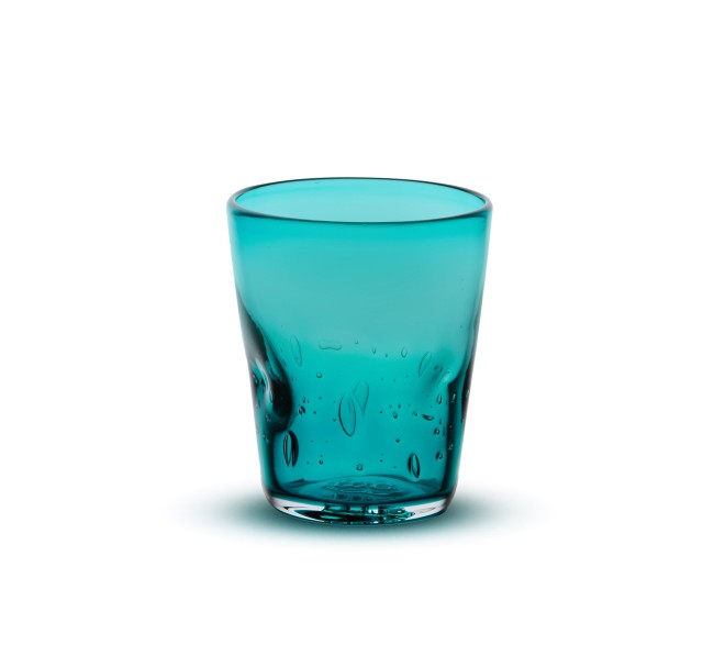 Un verre fabriqué à partir de pâte de verre soufflée à la main, puis pressé à chaud pour obtenir sa forme caractéristique.