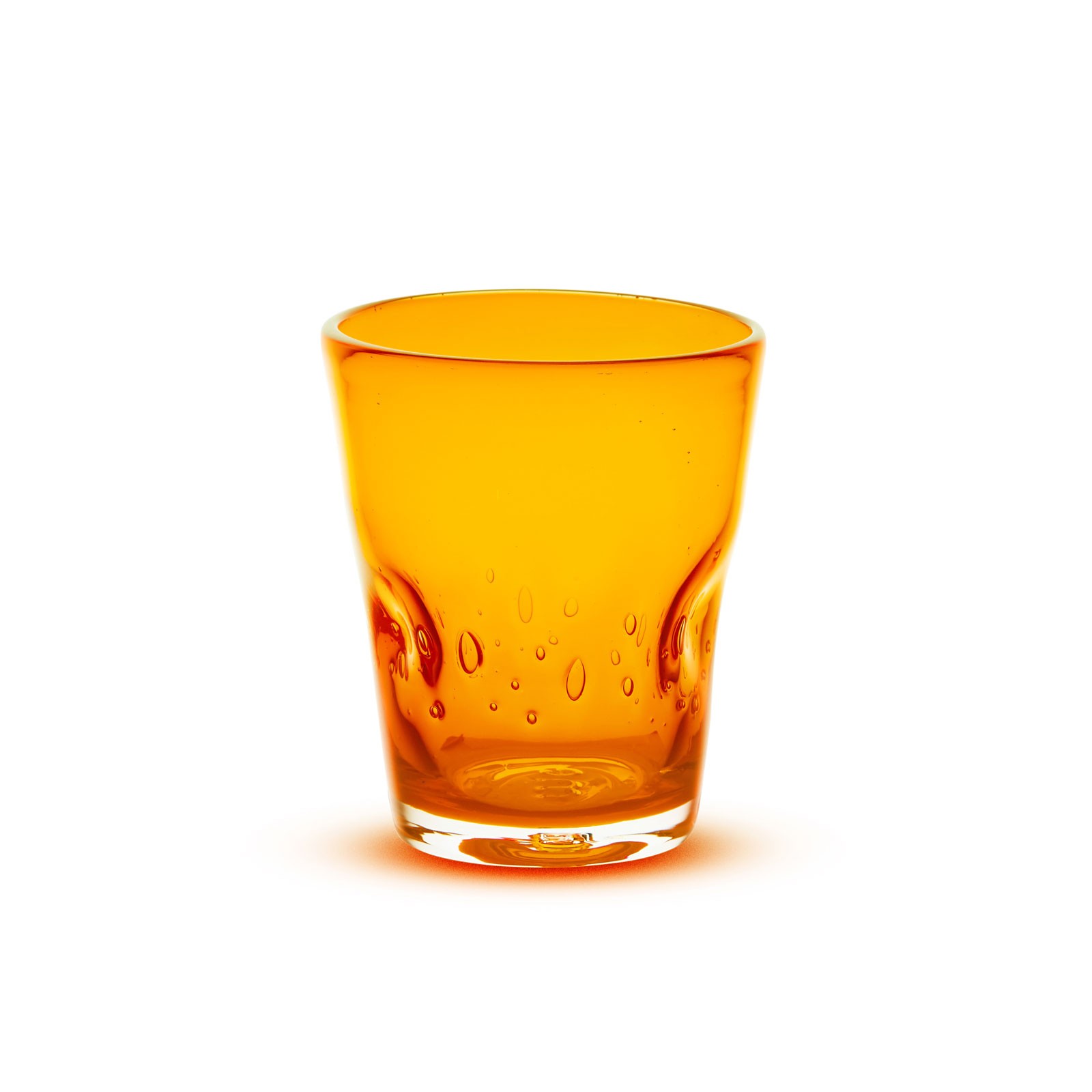 Un verre fabriqué à partir de pâte de verre soufflée à la main, puis pressé à chaud pour obtenir sa forme caractéristique.
